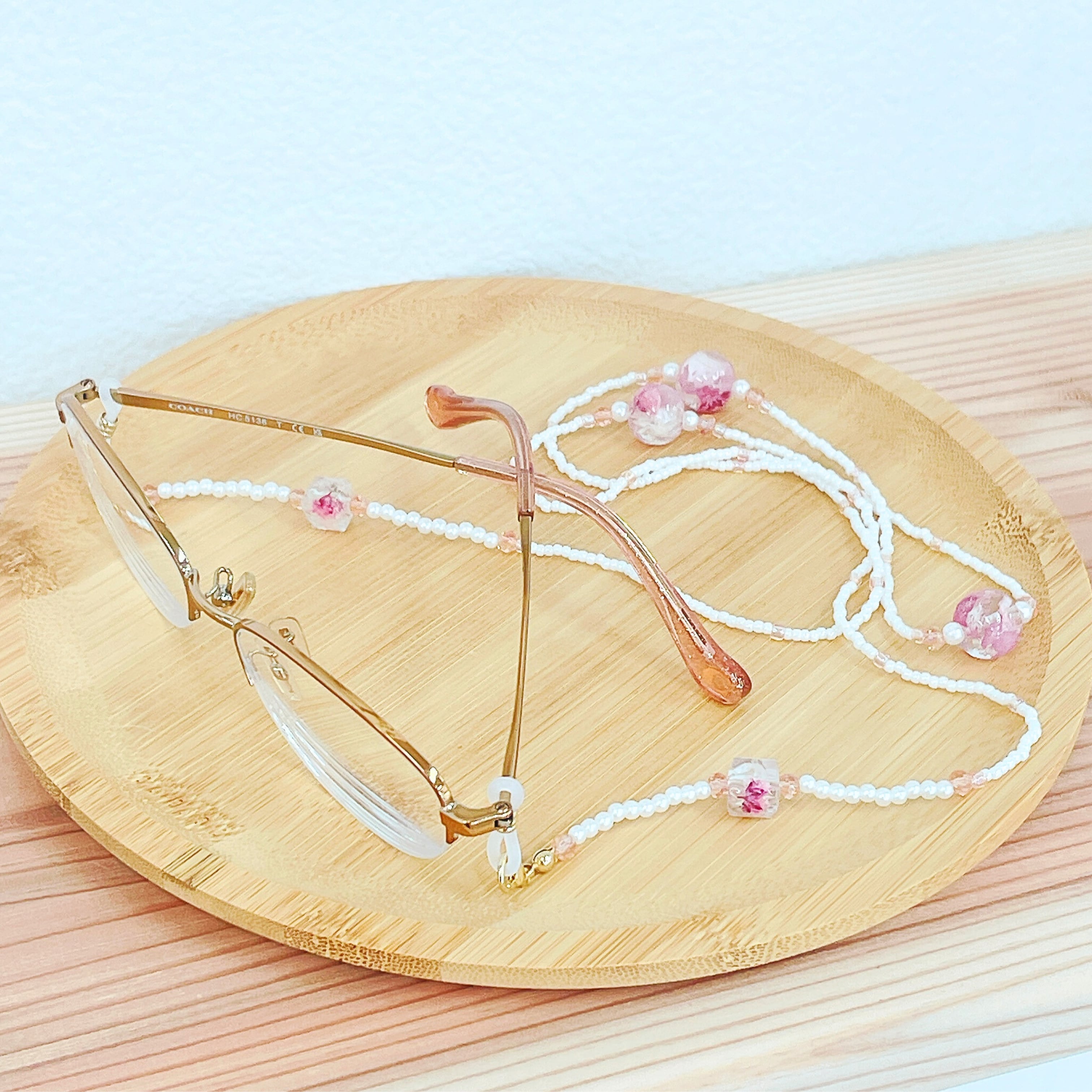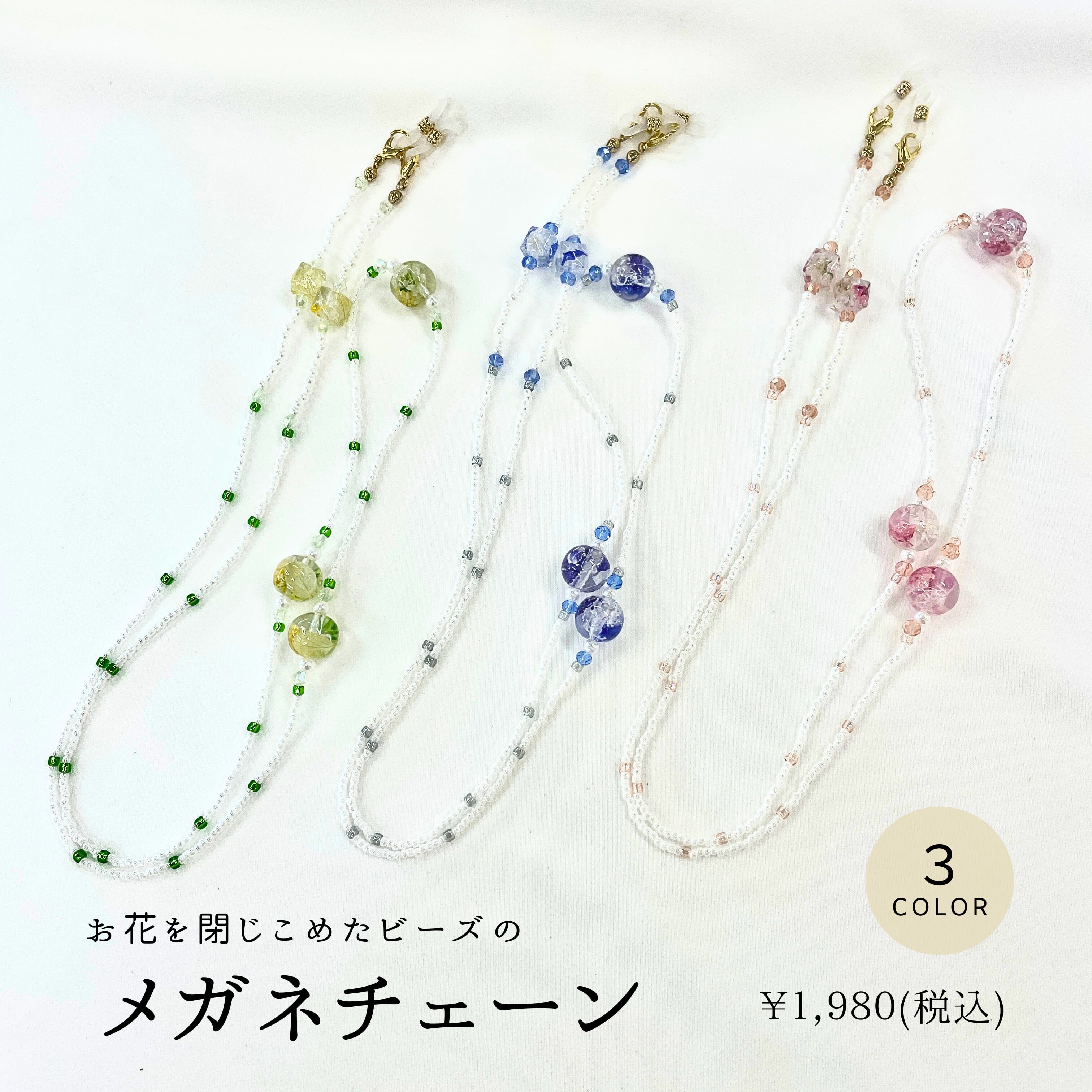 【お花を閉じこめたビーズのメガネチェーン】