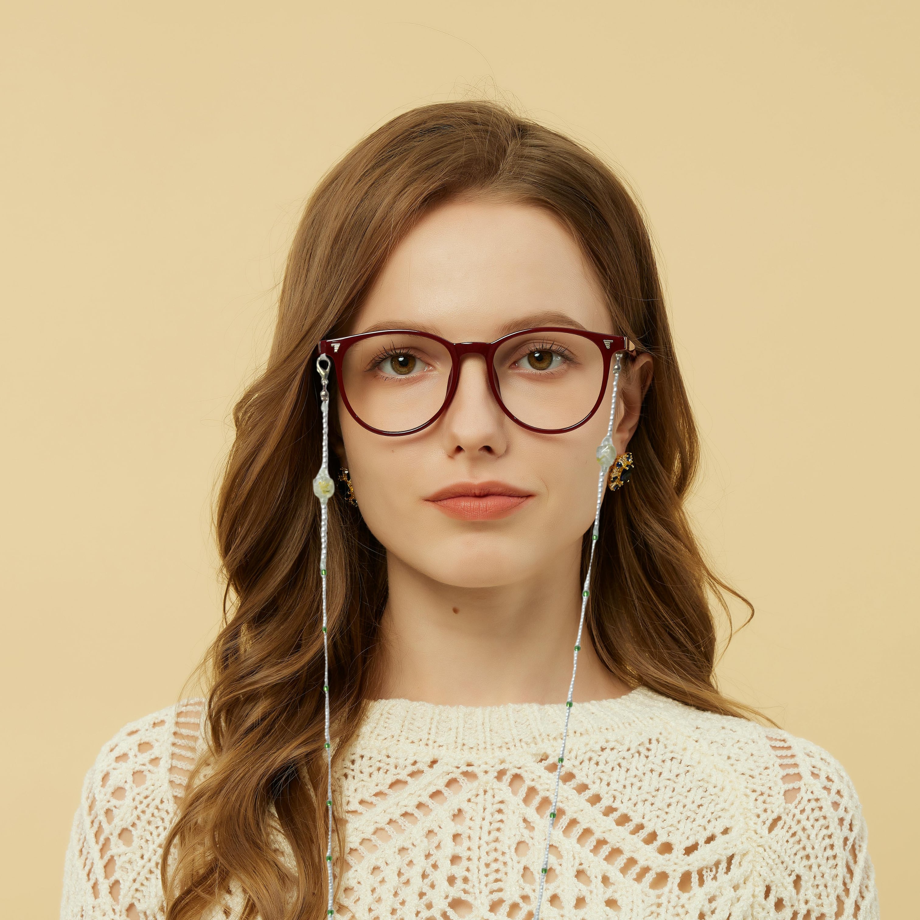 まるでアクセサリーのように華やかな、メガネチェーンができました。