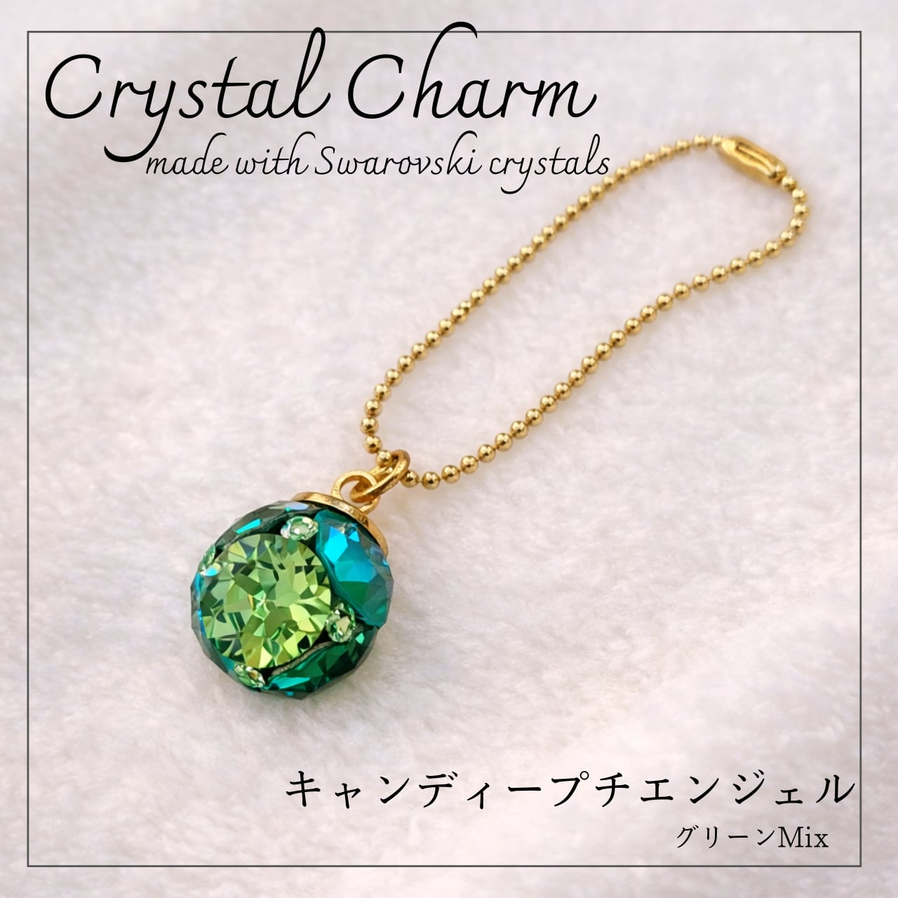 きらりと美しく輝く、スワロフスキー・クリスタルを使用したチャームです。